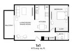 1 Dormitorio, 1 Baño, 687-698 pies²Galería del Modelo