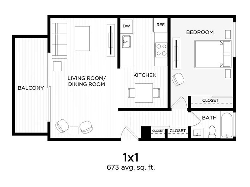 Modelo de apartamento: 1x1_LargeLlame para Precios1 Dormitorio, 1 Baño, 687-698 sq ftNo Disponible1x1_Large - Plano 1 1x1_Extra Large