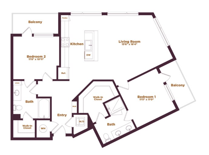 1 Dormitorio, 1 Baño, 738 pies²Disponible AhoraGalería del Modelo