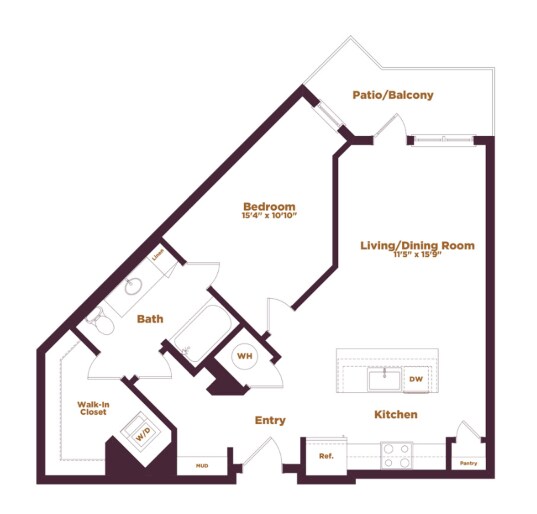 1 Dormitorio, 1 Baño, 570 pies²Disponible AhoraGalería del Modelo