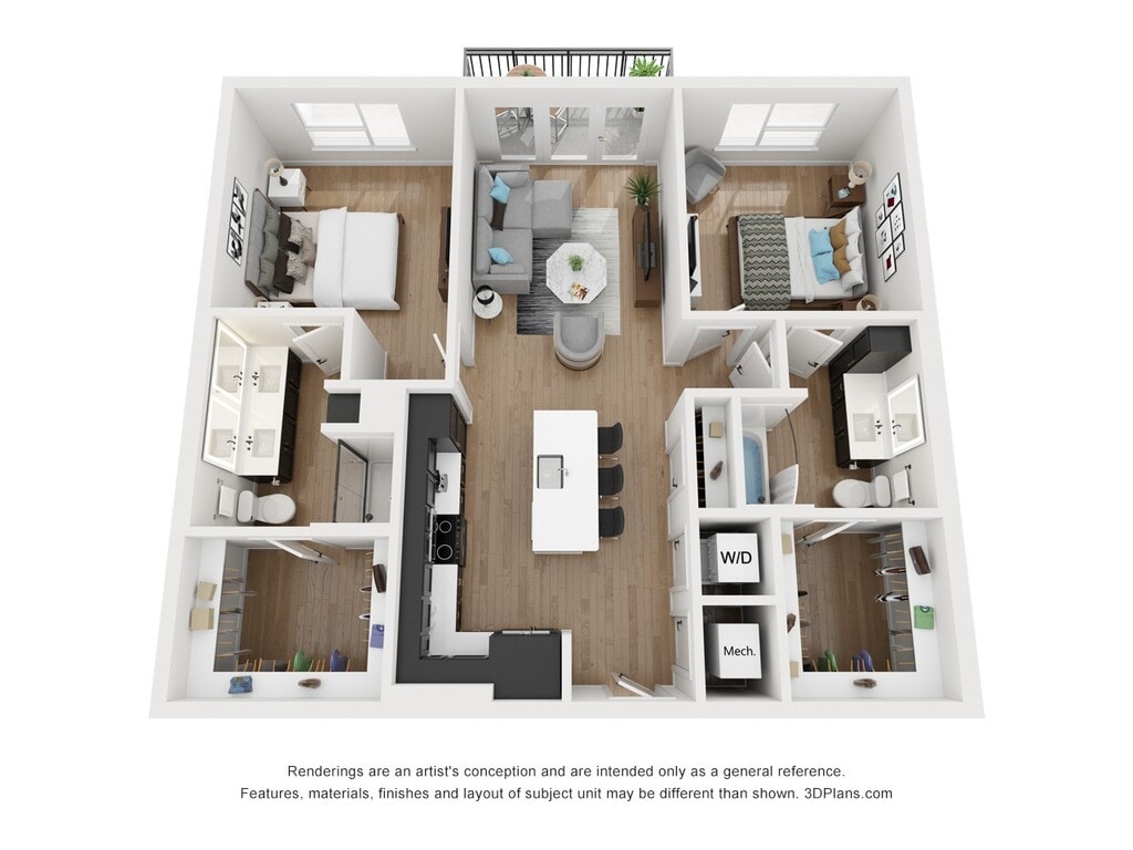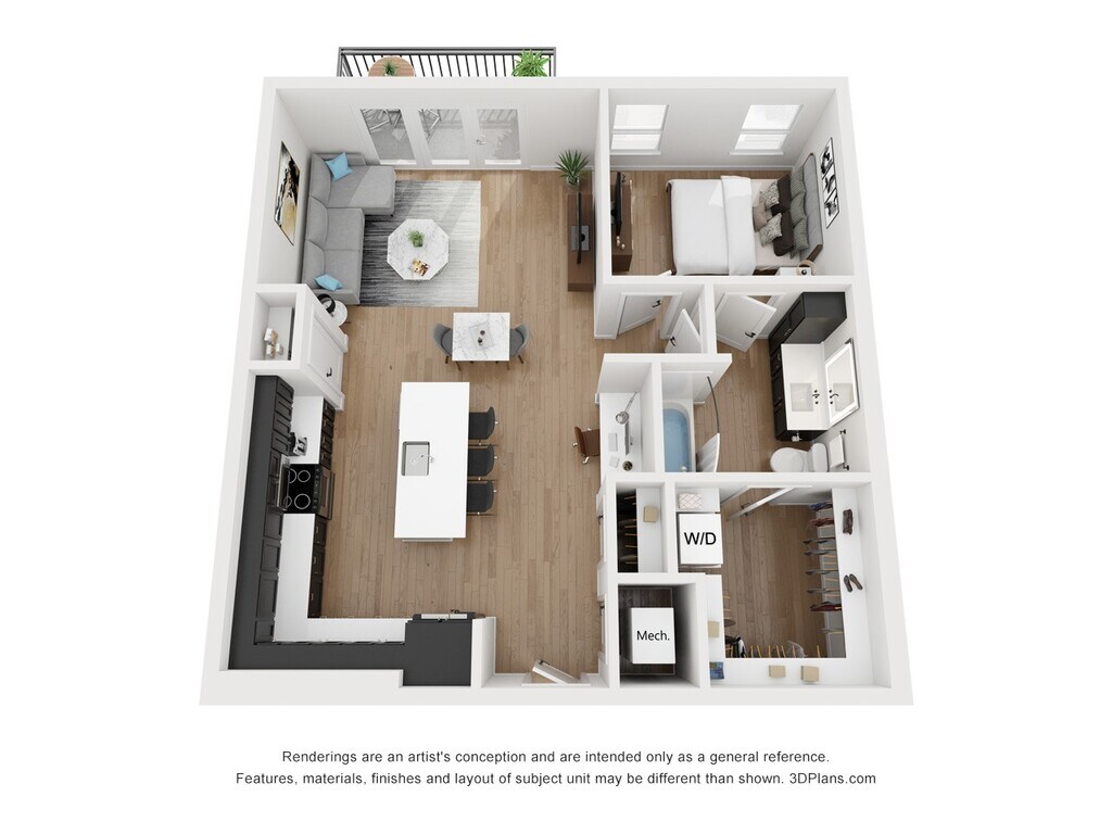 1 Dormitorio, 1 Baño, 735 pies²Disponible AhoraGalería del Modelo
