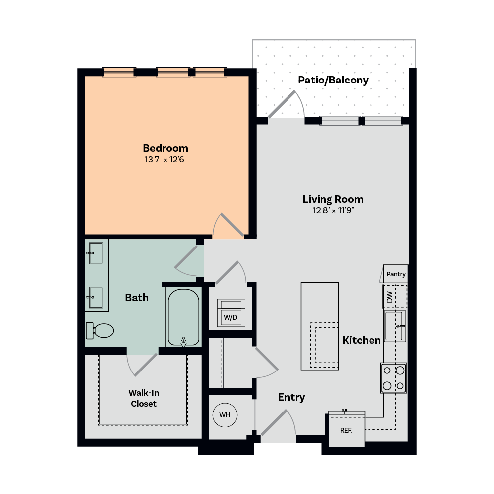 Estudio, 1 Baño, 567 pies²Disponible AhoraGalería del Modelo