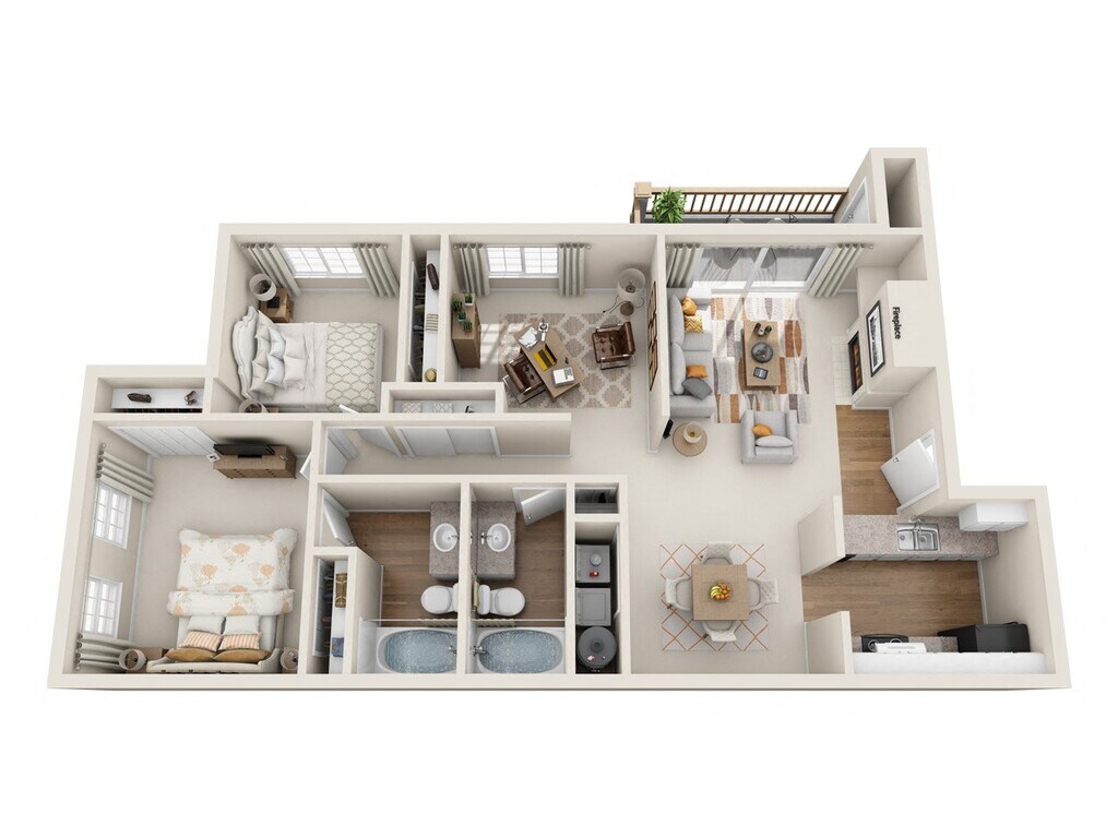 2 Dormitorios, 2 Baños, 900 pies²Disponible AhoraGalería del Modelo