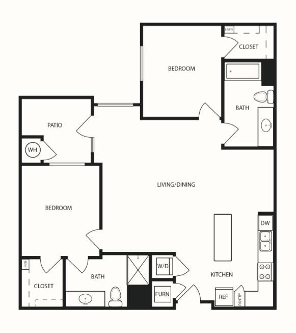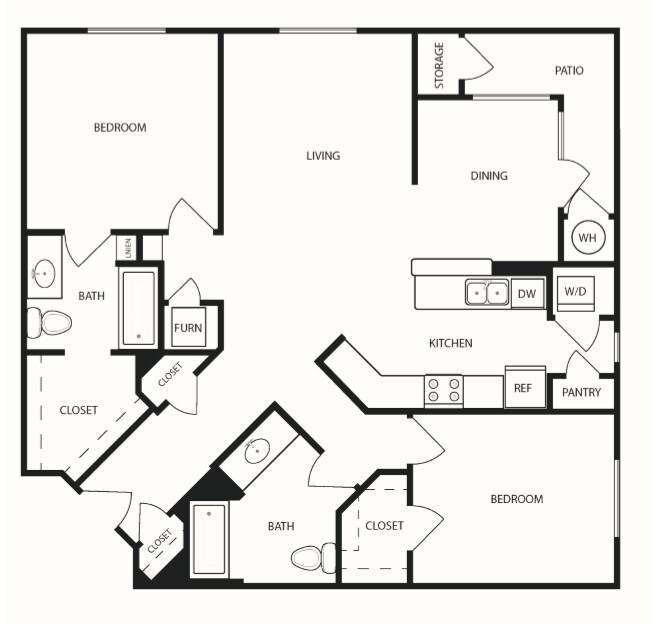 1 Dormitorio, 1 Baño, 1233 pies²El más grandeEsta opción tiene las unidades más grandes para este modeloGalería del Modelo