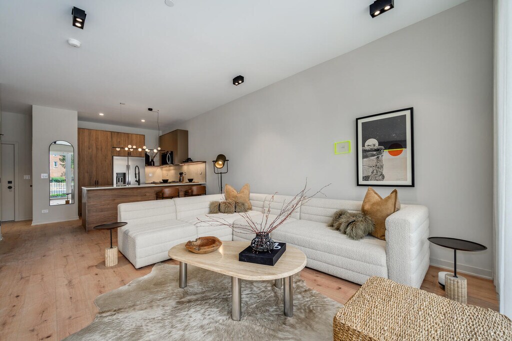 Situated just off the North Branch Chicago River, Novú is a new construction luxury apartment development from award-winning builder, Noah Properties. Expertly fusing the beauty of nature with the energy of city living, Novú delivers a next-level living experience today’s renters prefer. Boasting incredible resort-style amenities, residents will enjoy the private cabanas that surround the swimming pool, access to an expansive rooftop lounge with outdoor grilling, dining, and gaming areas – plus an entertainment penthouse framed by floor-to-ceiling windows that allow for stunning panoramic views of the serene neighborhood. The state-of-the-art health & fitness center has been outfitted with Peloton, Tonal and Rogue equipment, and also features a dry sauna relaxation room. Beyond the amenities, residents will appreciate the sophisticated finishes, high-design style, and modern in-home conveniences crafted around today’s lifestyle. Each apartment features high ceilings, oversized European windows with custom treatments and modern wide plank flooring that allows the natural light to fill the home. The open concept layout is ideal for everyday living and entertaining. The kitchen features custom European cabinetry for ample storage, solid quartz countertops, and a stainless-steel appliance suite. The living room is centered by a custom three-sided fireplace and flows through to the private patio or balcony space for select floor plans. Most floor plans also feature en-suite bedrooms with large primary bathrooms boasting walk-in showers, dual sink vanities, and spacious walk-in closets. Secondary bedrooms and bathrooms maintain similar high-end finishes. Other features include in-home washer and dryer, extra storage closets, dual building elevators, a secure package room, garage parking, a pet grooming room, EV charging stations, on-site maintenance and management, and more!