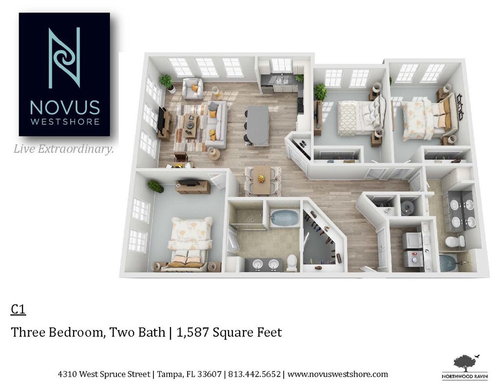 Novus Westshore ofrece apartamentos de Estudio a 3 Dormitorios desde $1,907 con 688–1,717 pies cuadrados. Aquí está el precio actual y la disponibilidad:
