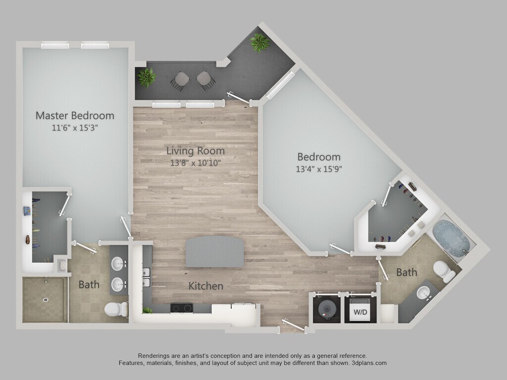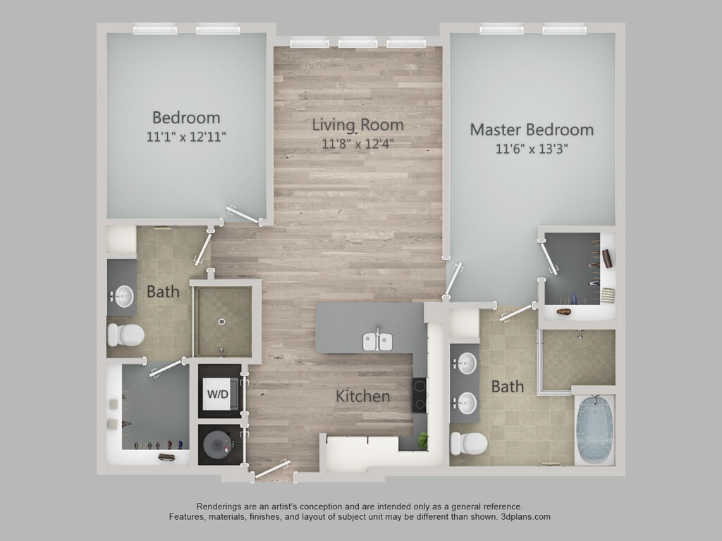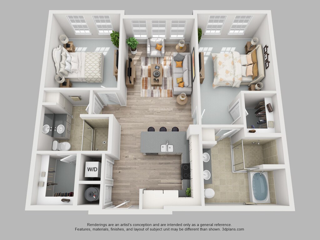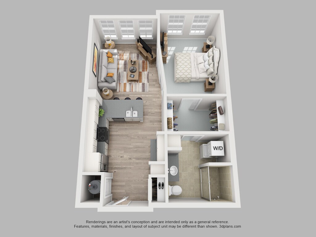 1 Dormitorio, 1 Baño, 750 pies²Disponible AhoraGalería del Modelo