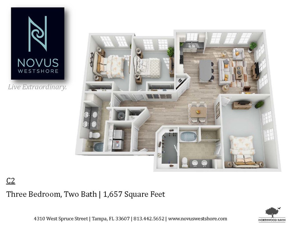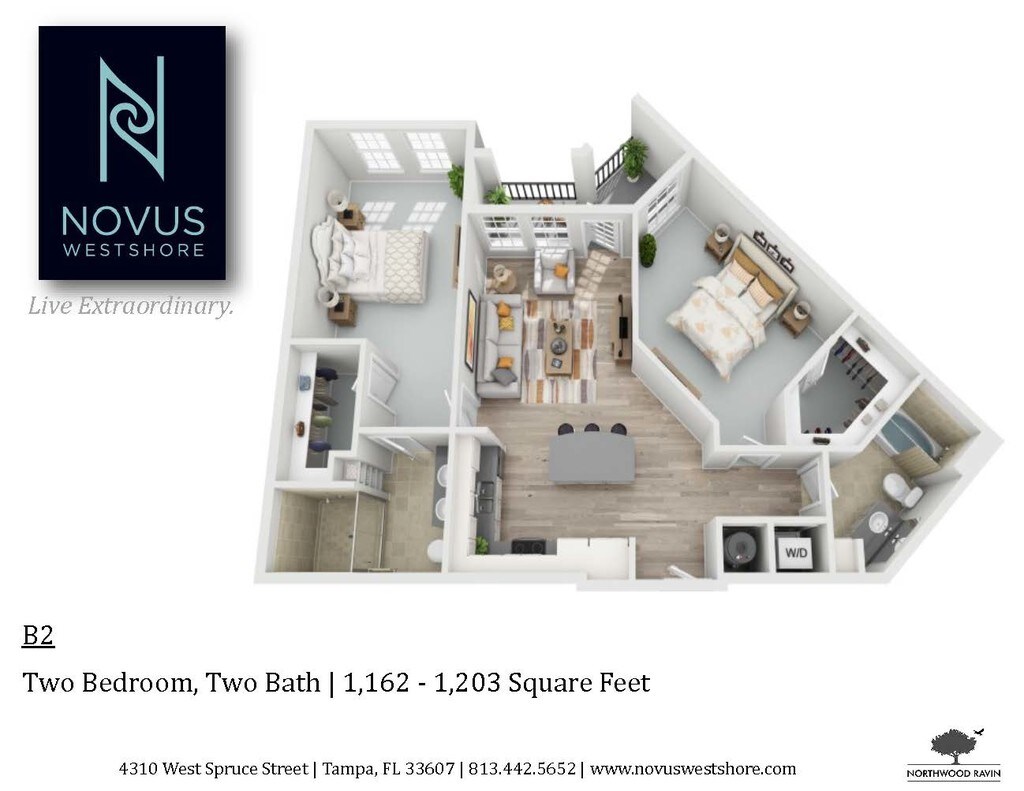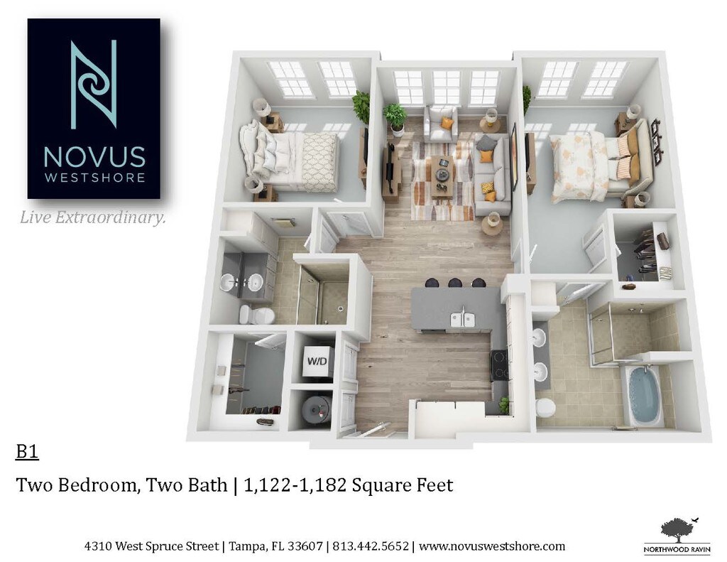 Novus Westshore se encuentra en el Barrio Westshore y el código postal 33607 de Tampa, FL. Esta comunidad está gestionada profesionalmente por Northwood Ravin
