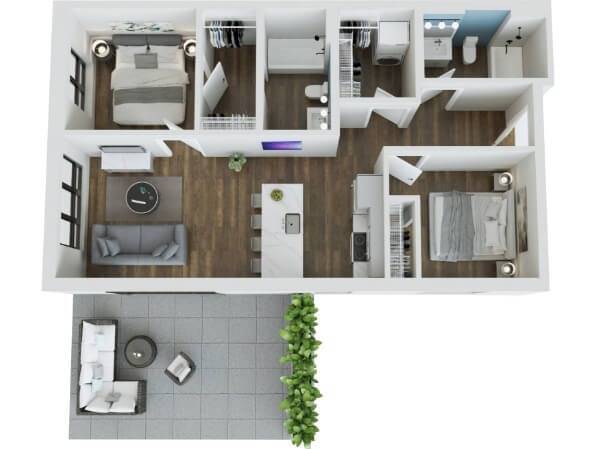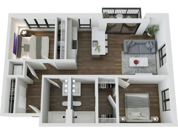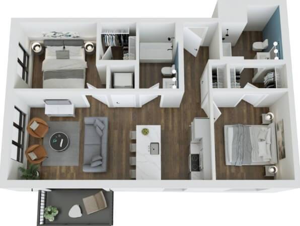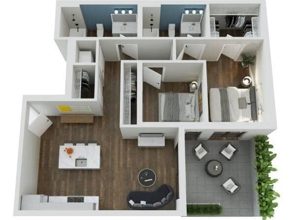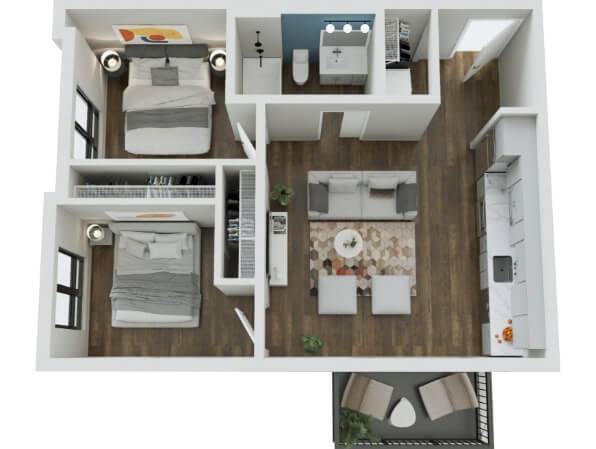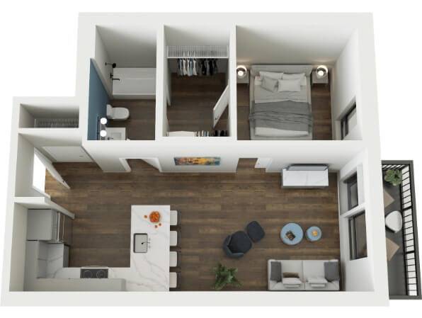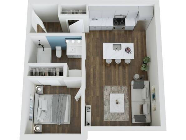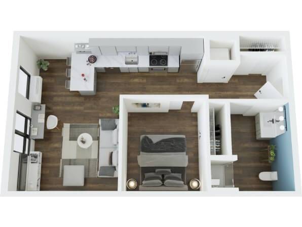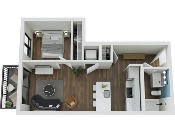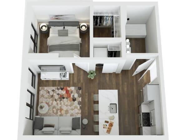 Deimos - Plano 1 Unidad de apartamento: 325Modelo de apartamento: Deimos$1,6251 Dormitorio, 1 Baño, 638 sq ftDisponible AhoraElara