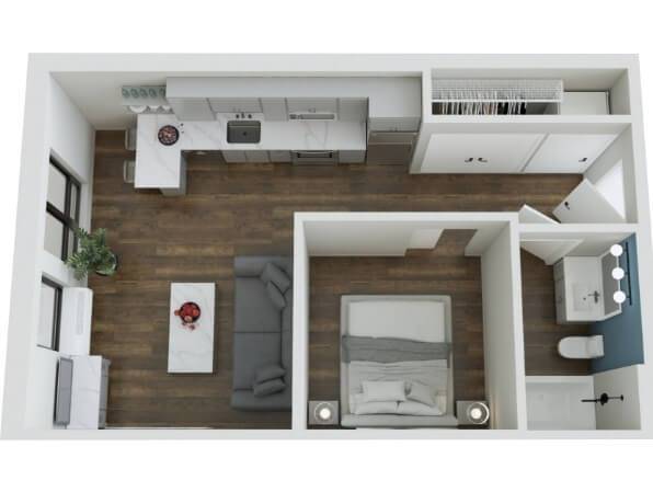 Estudio, 1 Baño, 473 pies²Precio Mensual TotalDisponible AhoraEl más grandeEsta opción tiene las unidades más grandes para este modeloGalería del Modelo