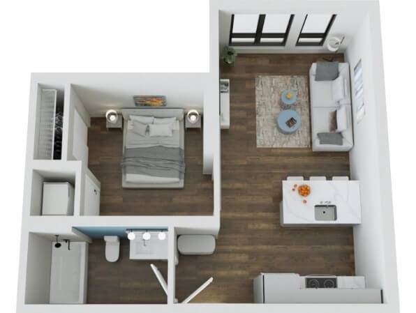 Modelo de apartamento: Oberon$1,200Estudio, 1 Baño, 386 sq ftDisponible Ahora![]()