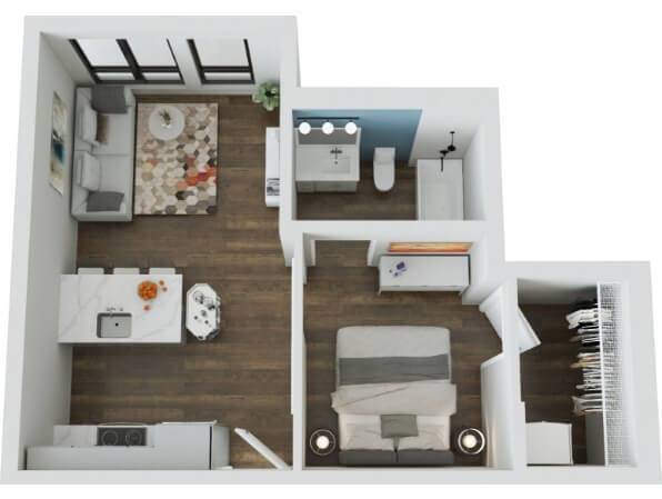 Modelo de apartamento: Elara$1,6501 Dormitorio, 1 Baño, 555 sq ftDisponible Ahora![]()
