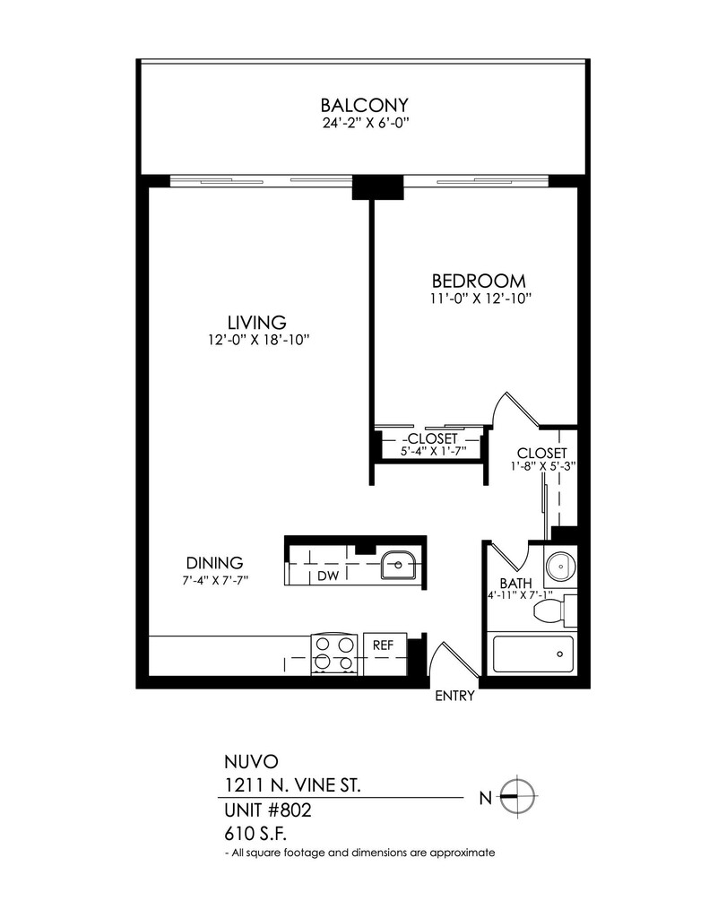 1 Dormitorio, 1 Baño, 610-680 pies²Disponible AhoraGalería del Modelo