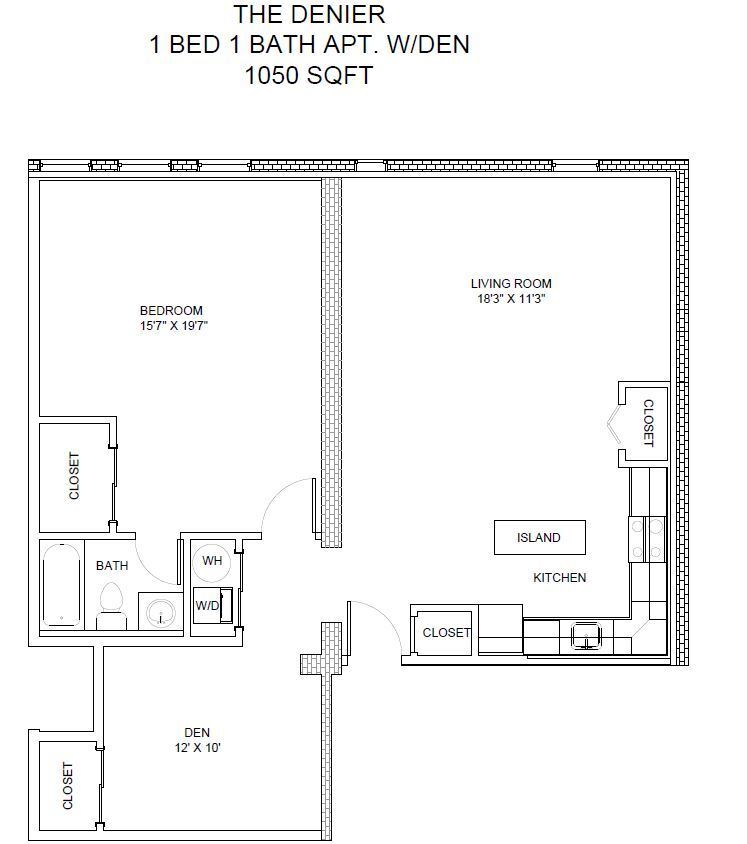 Modelo de apartamento: The Denier1 Dormitorio, 1 Baño, 1050 sq ftNo Disponible![]()