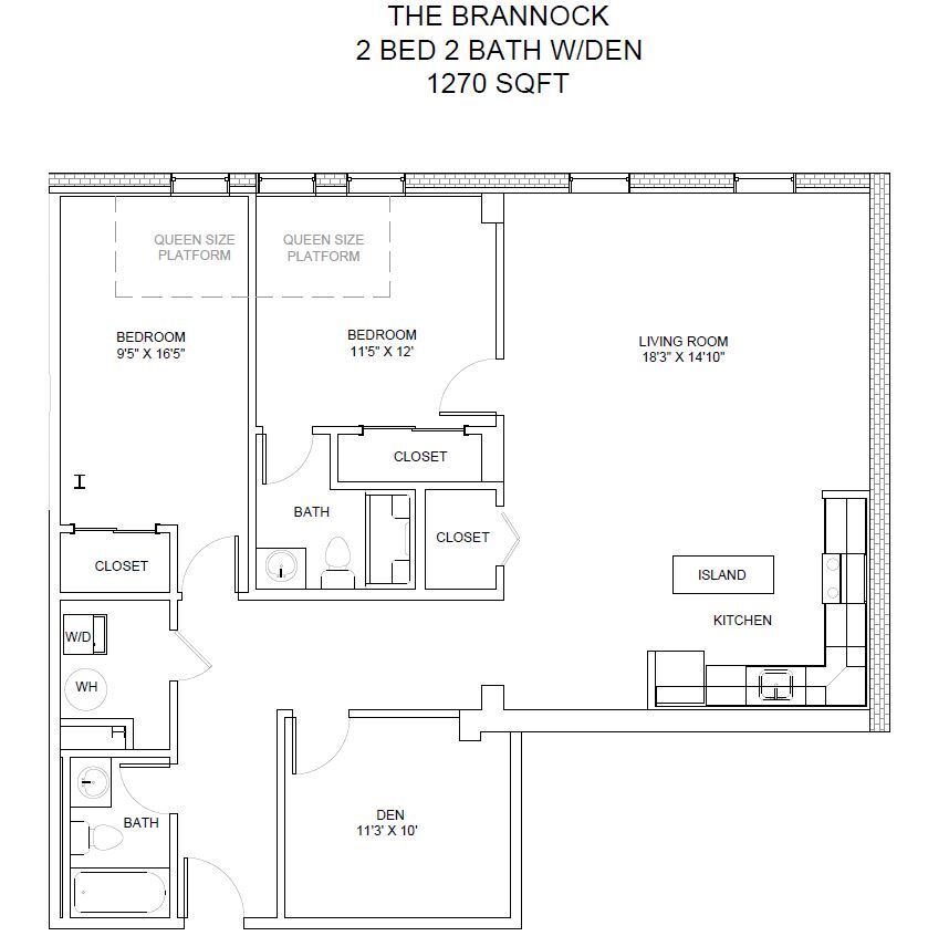 Modelo de apartamento: The Brannock2 Dormitorios, 2 Baños, 1270 sq ftNo Disponible![]()