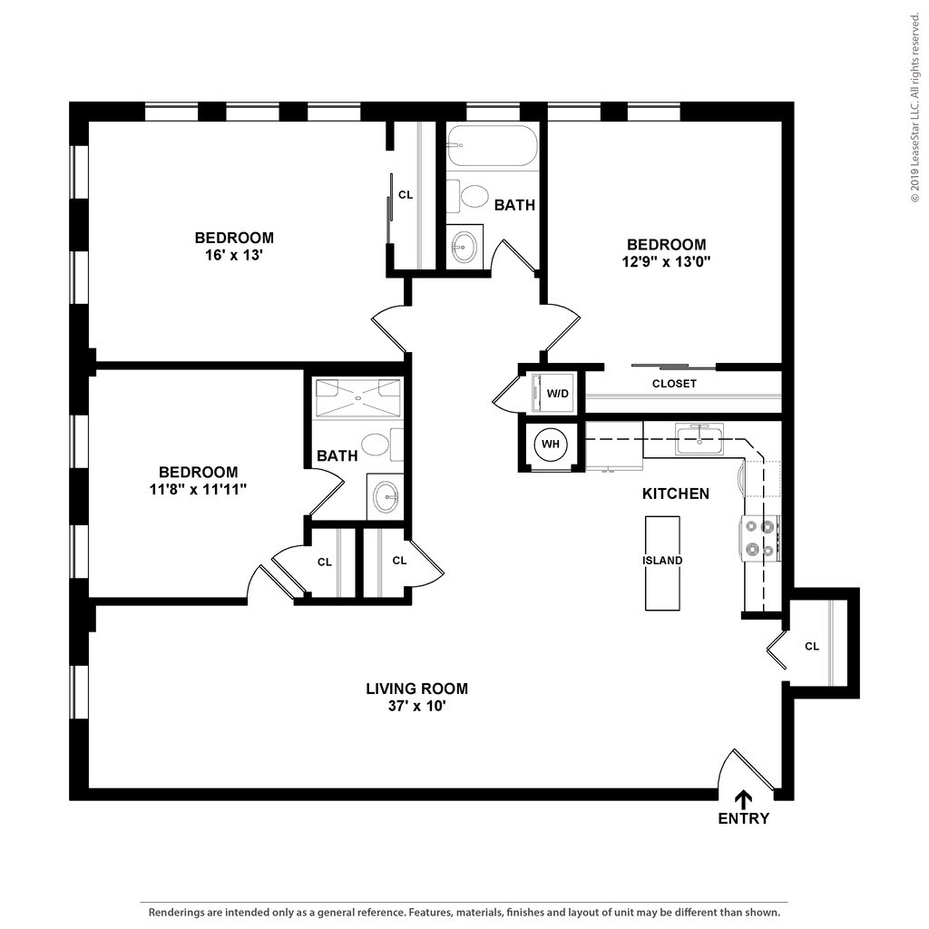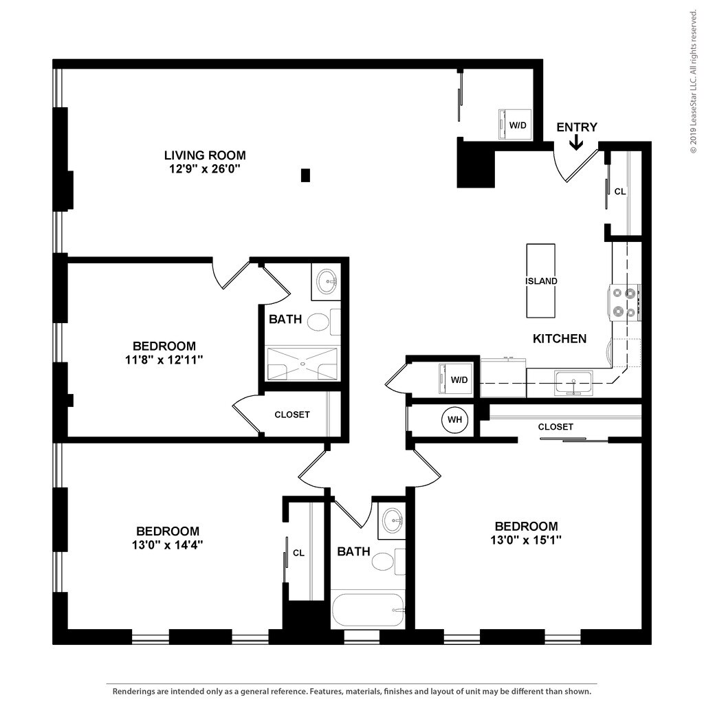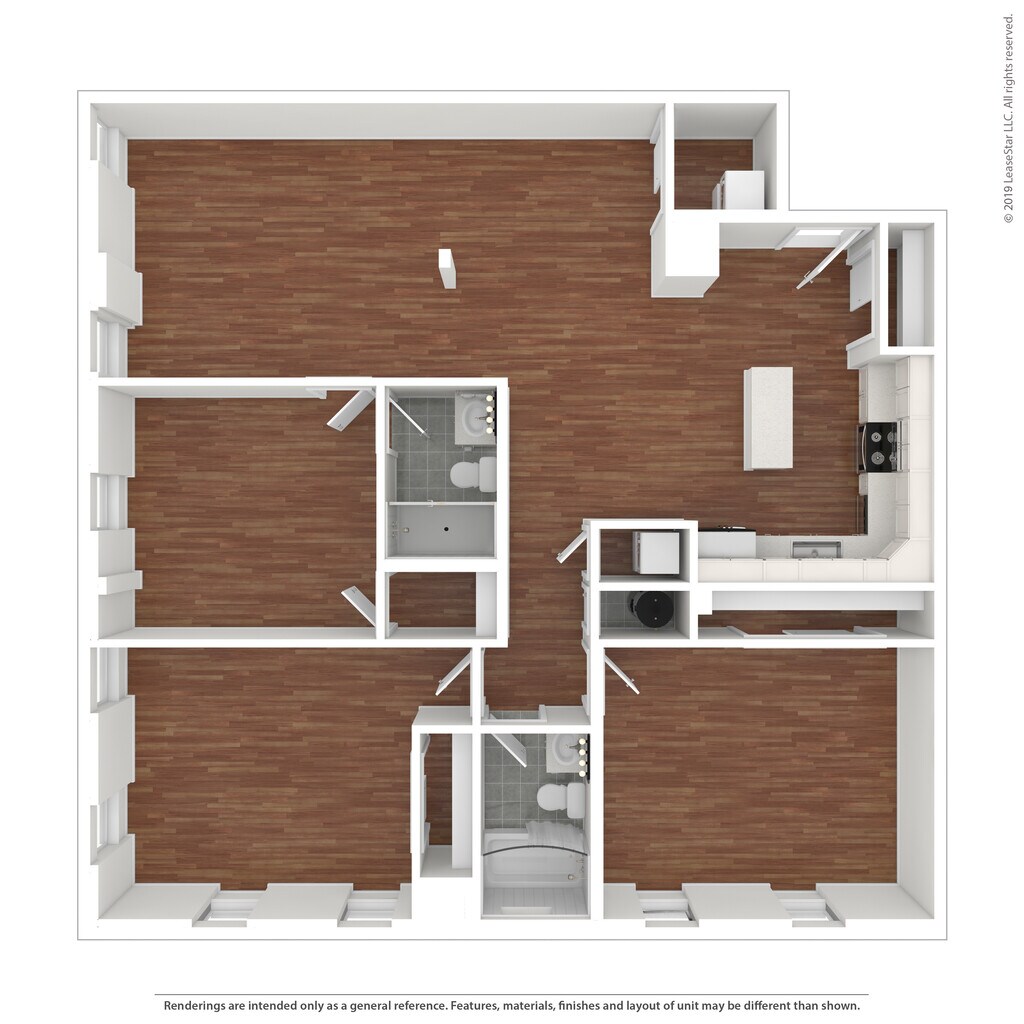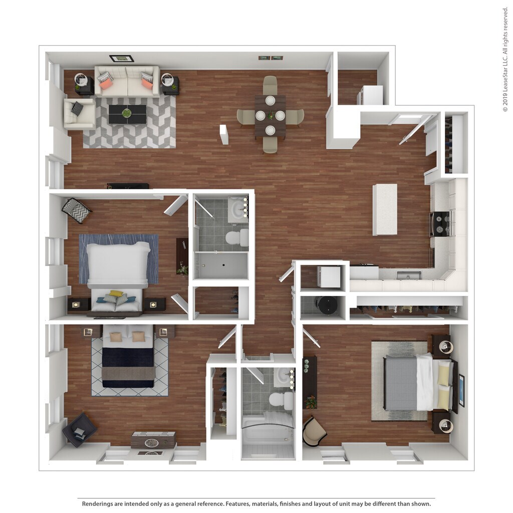 Modelo de apartamento: The Eva1 Dormitorio, 1 Baño, 1150 sq ftNo Disponible![]()