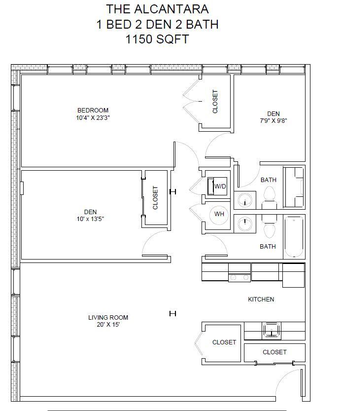 Modelo de apartamento: The Alcantara1 Dormitorio, 2 Baños, 1150 sq ftNo Disponible![]()