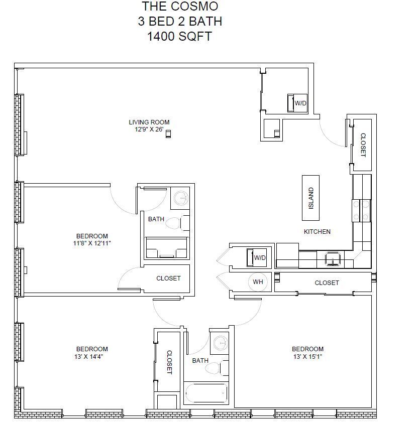 3 Dormitorios, 2 Baños, 1400 pies²Disponible AhoraGalería del Modelo