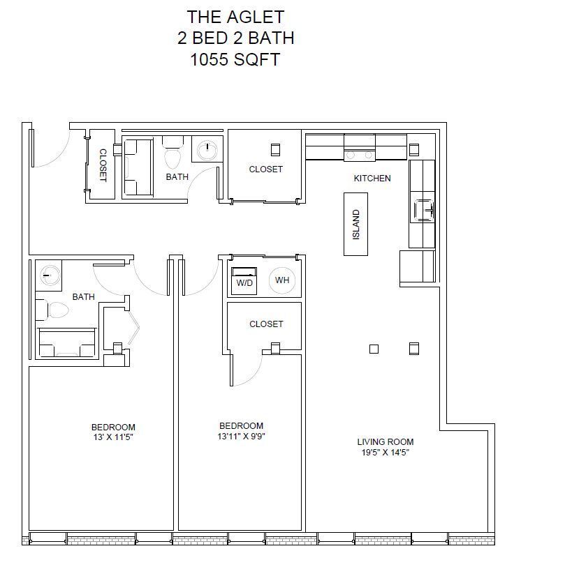Modelo de apartamento: The Aglet2 Dormitorios, 2 Baños, 1055 sq ftNo Disponible![]()