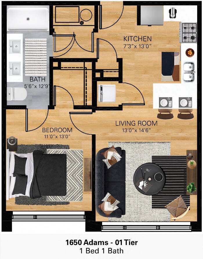 1 Dormitorio, 1 Baño, 660 pies²Galería del Modelo