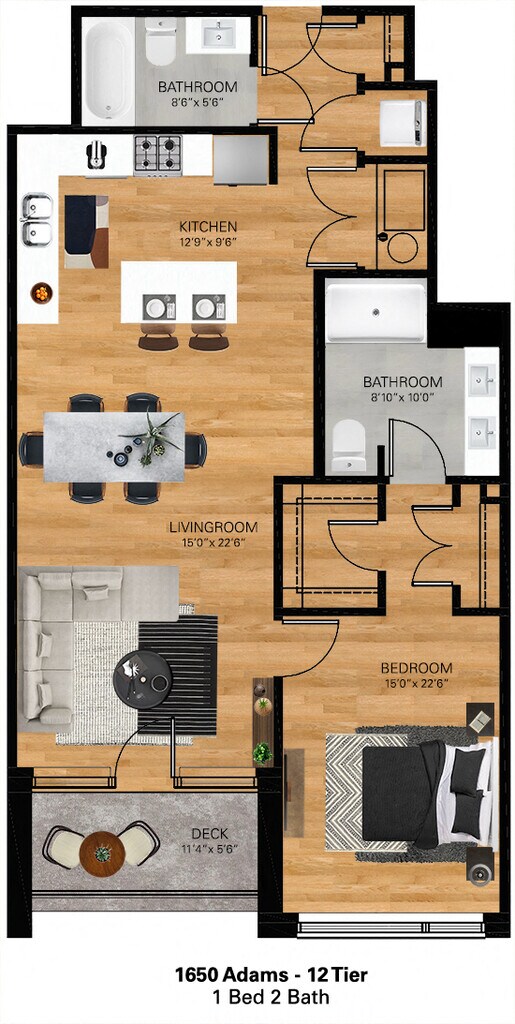 2 Dormitorios, 2 Baños, 1100-1250 pies²Galería del Modelo