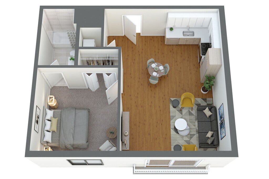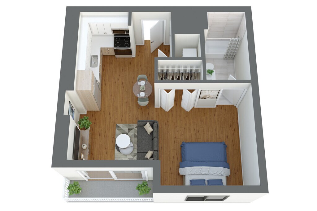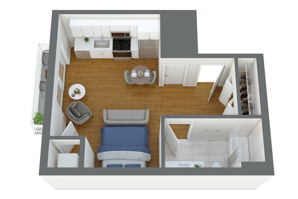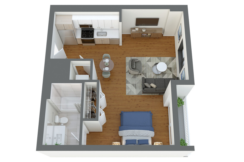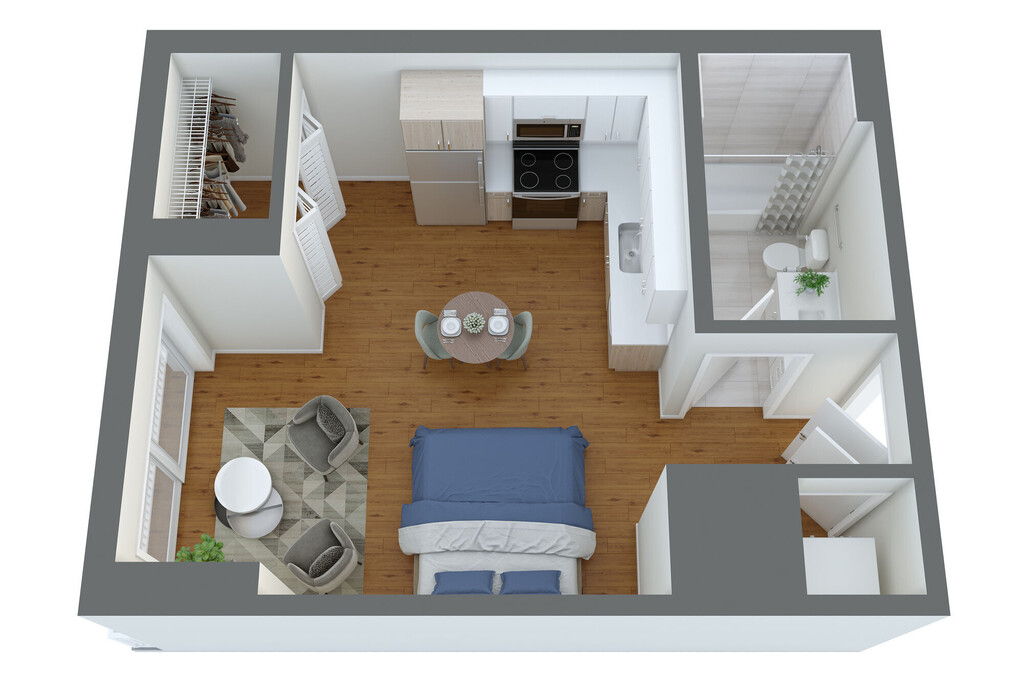 Estudio, 1 Baño, 451 pies²Disponible AhoraGalería del Modelo