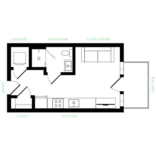 Estudio, 1 Baño, 427 pies²Disponible AhoraGalería del Modelo