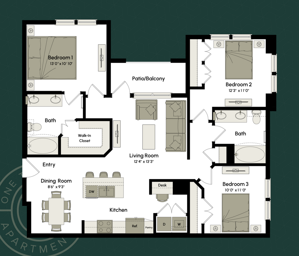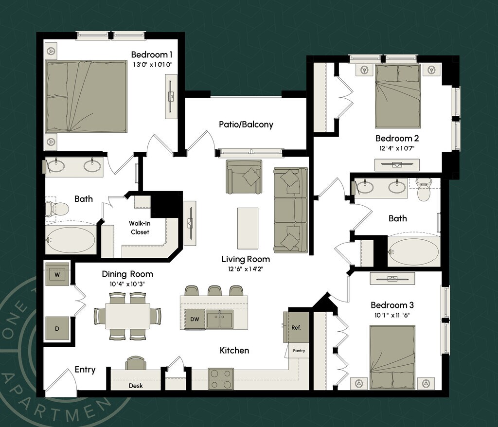 3 Dormitorios, 2 Baños, 1179 pies²El más grandeEsta opción tiene las unidades más grandes para este modeloGalería del Modelo