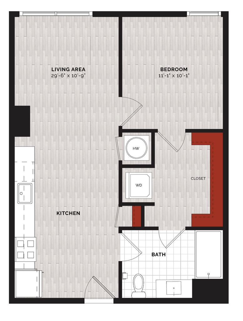 1 Dormitorio, 1 Baño, 550-558 pies²Disponible AhoraGalería del Modelo