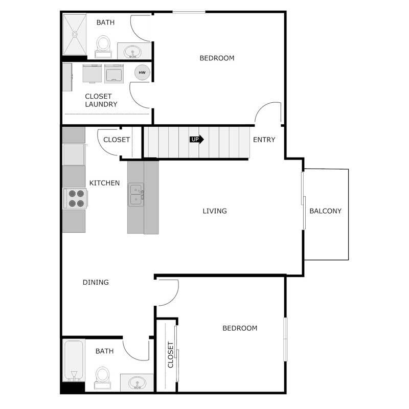 Modelo de apartamento: 2 BED 2 BATH LOWER$1,3802 Dormitorios, 2 Baños, 1067 sq ftNo Disponible![]()