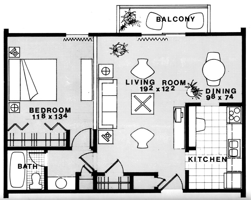 1 Dormitorio, 1 Baño, 705 pies²Disponible AhoraGalería del Modelo