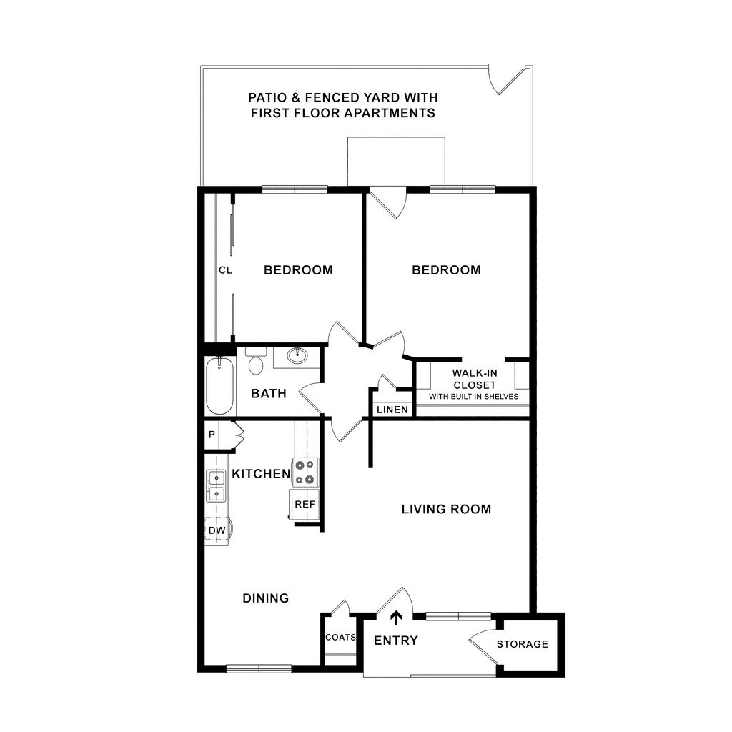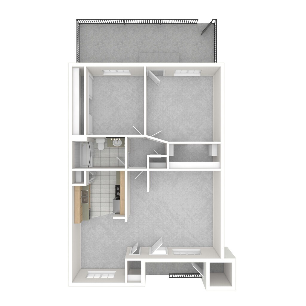 2 Dormitorios, 1 Baño, 950 pies²Disponible AhoraGalería del Modelo