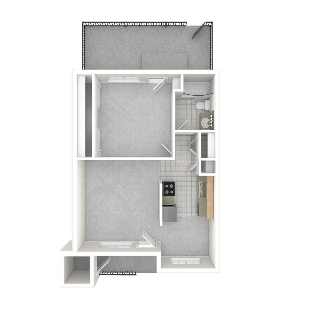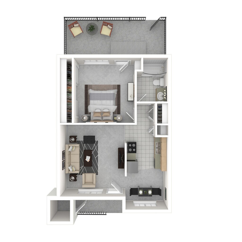 1 Dormitorio, 1 Baño, 700 pies²Disponible AhoraGalería del Modelo