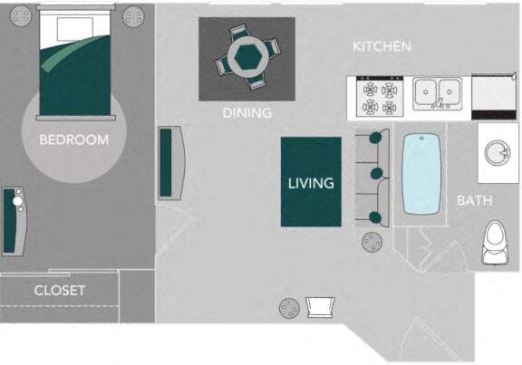 Modelo de apartamento: StudioEstudio, 1 Baño, 389 sq ftNo Disponible![]()