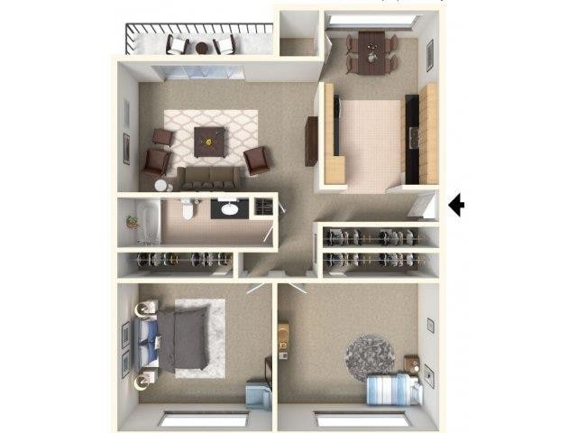 Modelo de apartamento: TWO BEDDesde $1,5002 Dormitorios, 1 Baño, 850 sq ftDisponible Ahora![]()