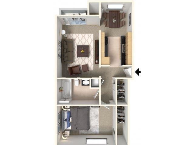 1 Dormitorio, 1 Baño, 750 pies²Disponible AhoraGalería del Modelo