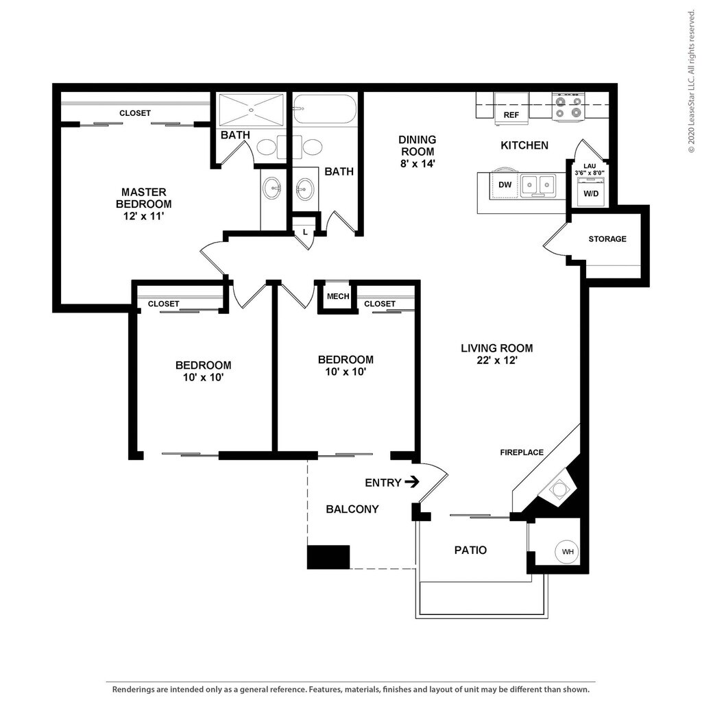 Modelo de apartamento: 3 Bedroom 2 Bath$3,5633 Dormitorios, 2 Baños, 1170 sq ftDisponible Ahora![]()