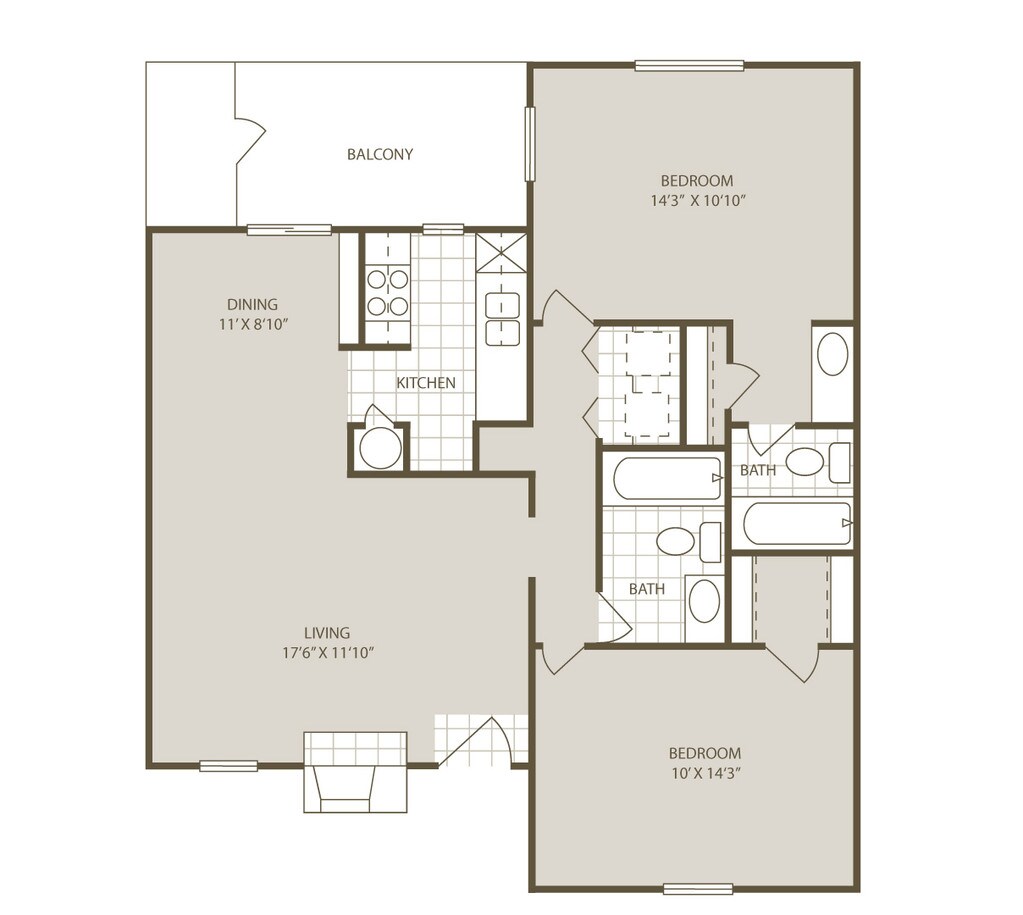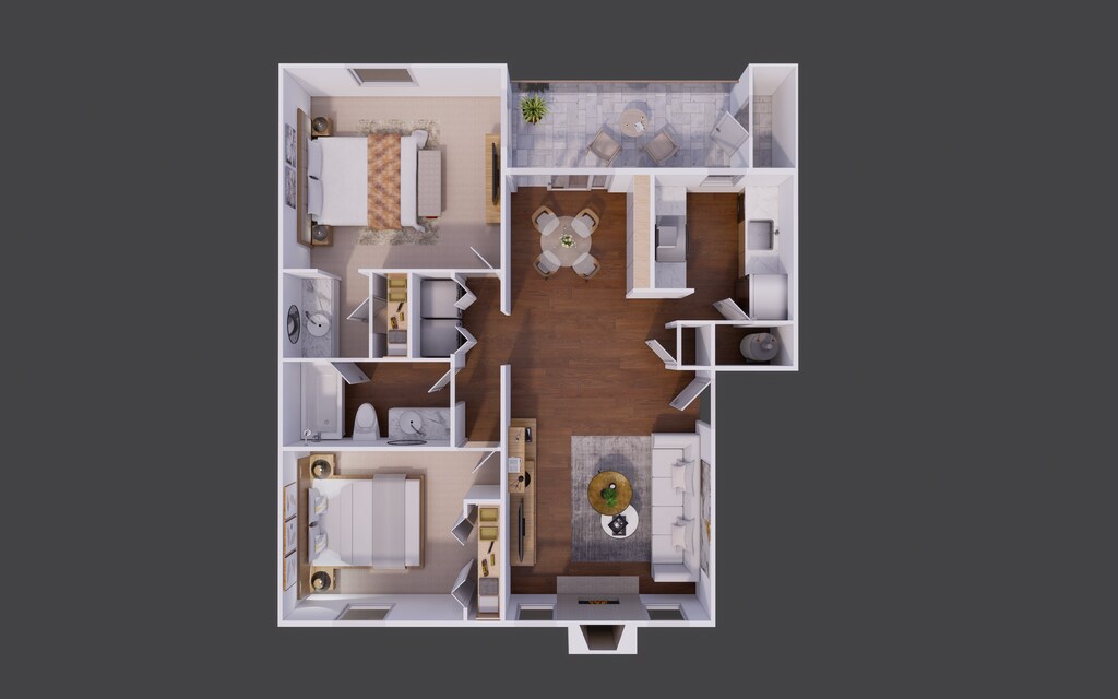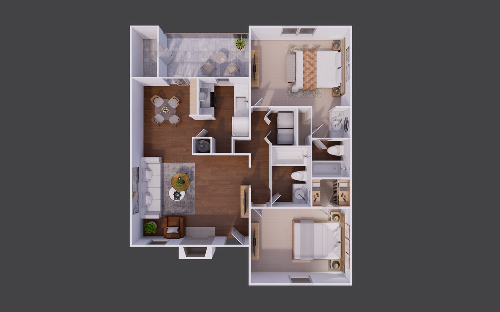 Modelo de apartamento: B1$1,0052 Dormitorios, 1 Baño, 911 sq ftNo Disponible![]()