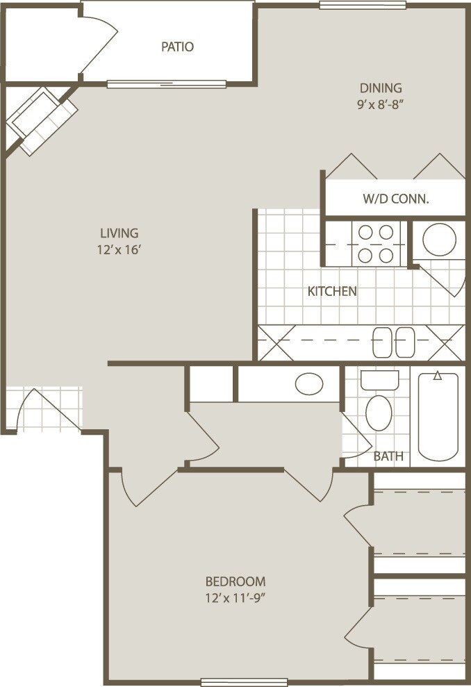 Modelo de apartamento: A1R2$8551 Dormitorio, 1 Baño, 530 sq ftNo Disponible![]()