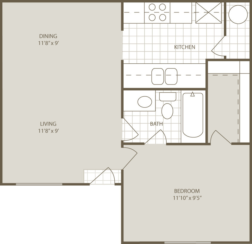 Modelo de apartamento: A1$7801 Dormitorio, 1 Baño, 530 sq ftNo Disponible![]()