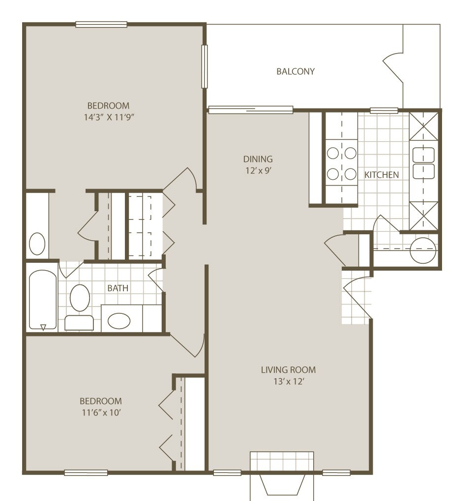 Modelo de apartamento: A2R$1,0801 Dormitorio, 1 Baño, 737 sq ftDisponible Ahora![]()