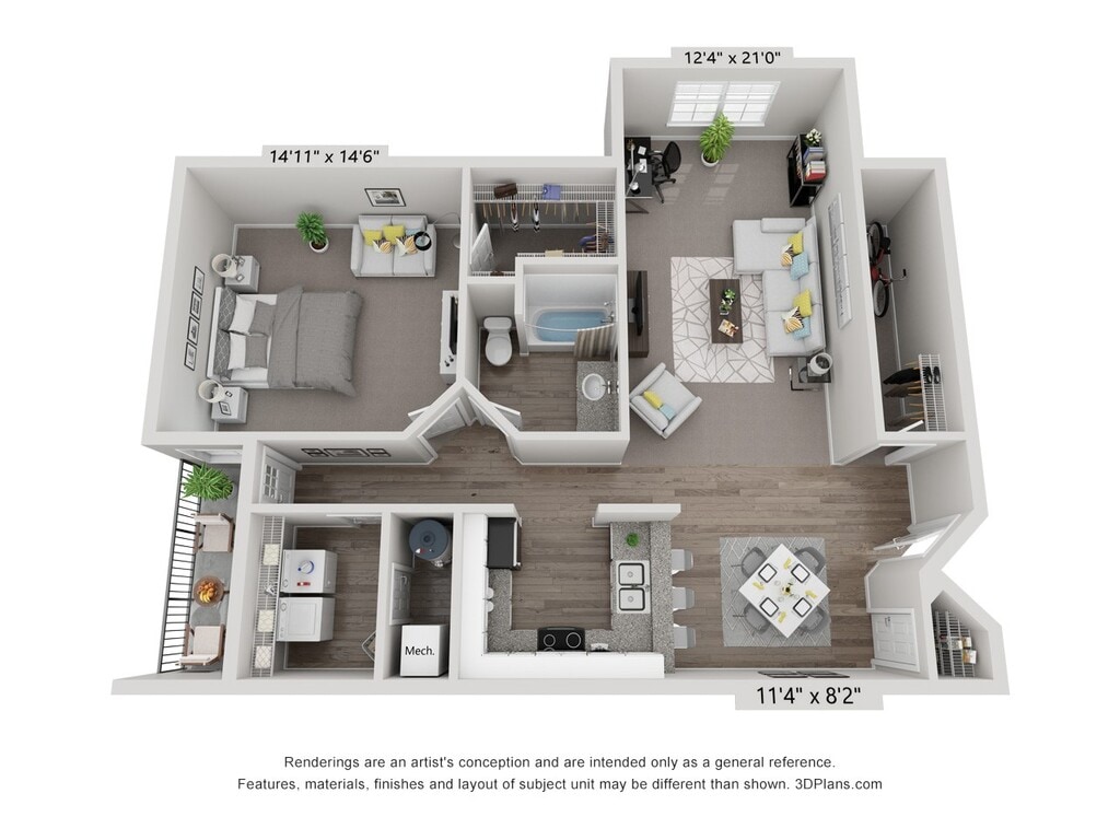 1 Dormitorio, 1 Baño, 943 pies²Disponible AhoraGalería del Modelo