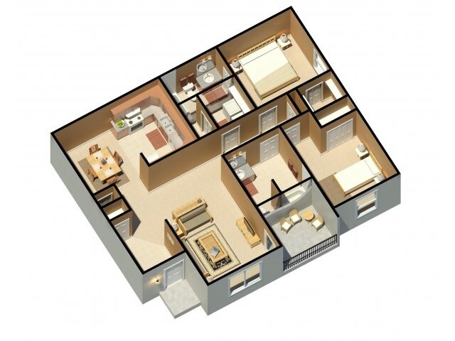 Modelo de apartamento: Three Bedroom3 Dormitorios, 2 Baños, 1316-1356 sq ftDisponible November 11, 2025![]()