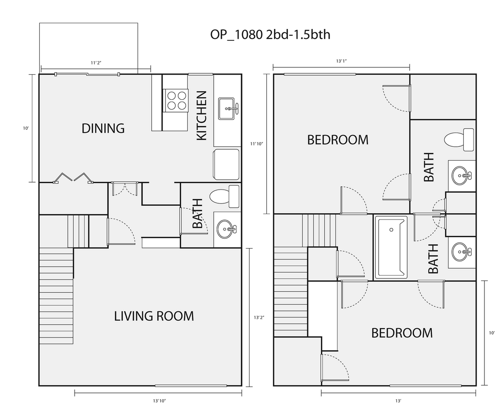 2 Dormitorios, 1.5 Baños, 1080 pies²El más grandeEsta opción tiene las unidades más grandes para este modeloGalería del Modelo