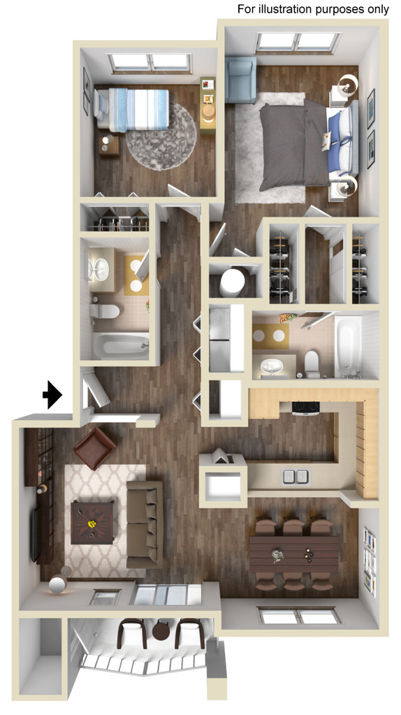 2 Dormitorios, 1 Baño, 972 pies²Galería del Modelo