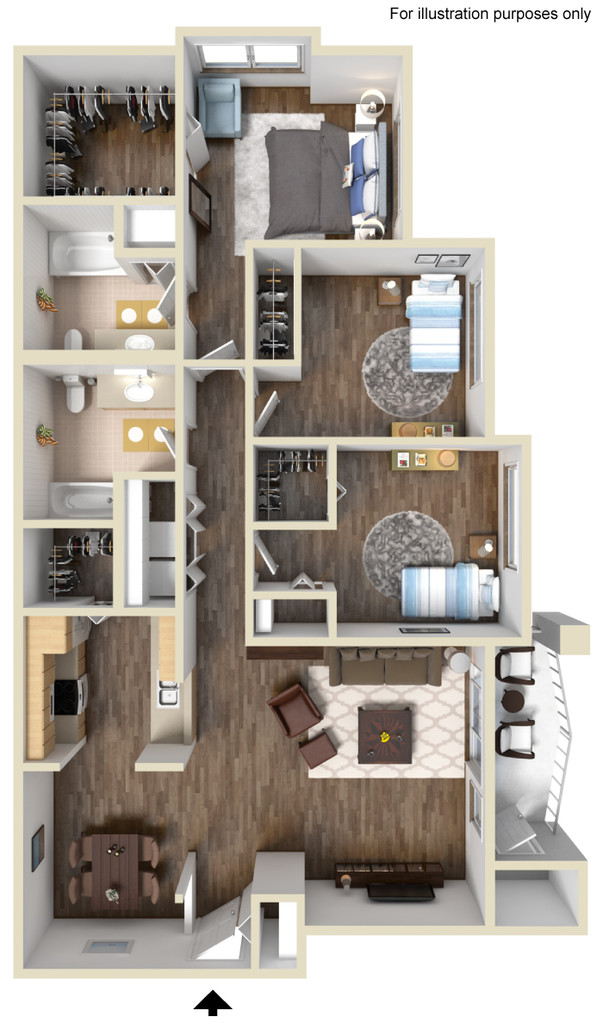 Modelo de apartamento: Three Bedroom3 Dormitorios, 2 Baños, 1278 sq ftNo DisponibleThree Bedroom - Plano 1