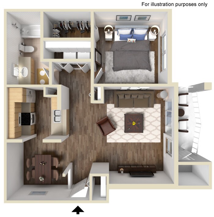 1 Dormitorio, 1 Baño, 725 pies²Galería del Modelo
