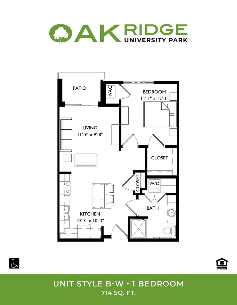 Modelo de apartamento: B-WDesde $6461 Dormitorio, 1 Baño, 714 sq ftNo Disponible![]()