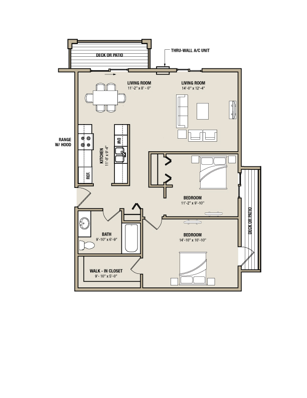 Modelo de apartamento: Evergreen - StandardDesde $1,5452 Dormitorios, 1 Baño, 942 sq ftDisponible Ahora![]()
