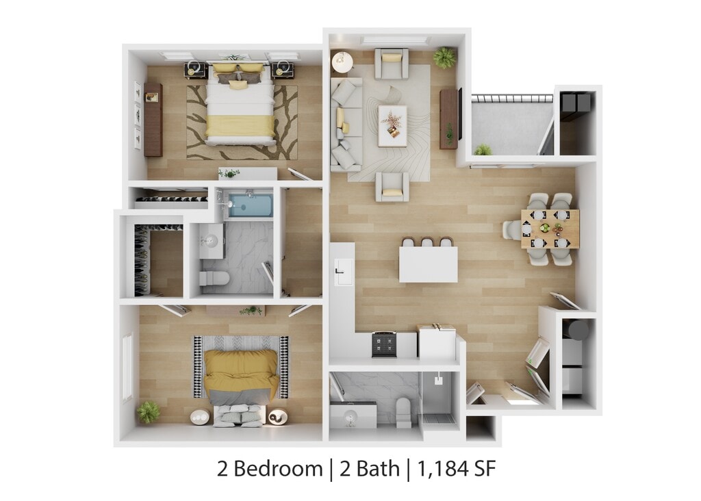 Modelo de apartamento: B2-Oak$2,7022 Dormitorios, 1 Baño, 1184 sq ftDisponible Ahora![]()